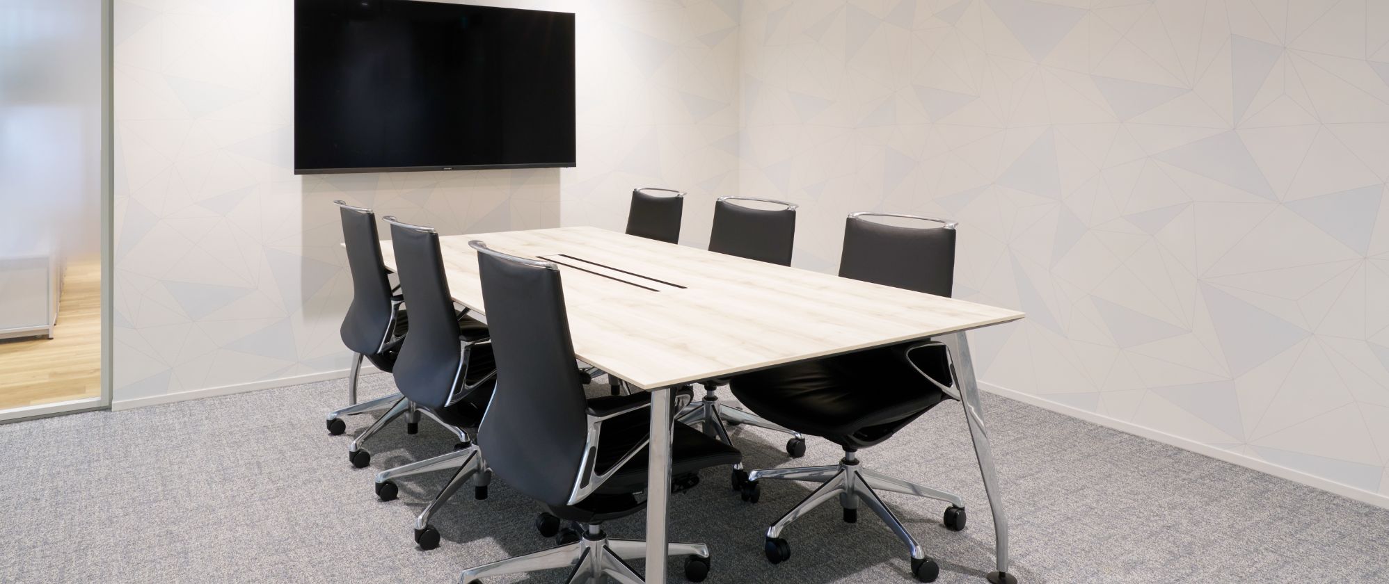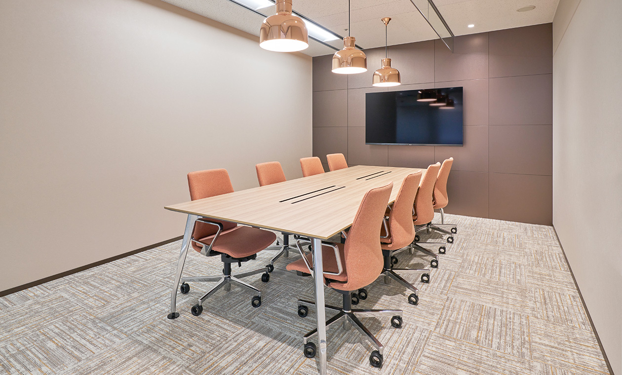 MMTCのオフィスは、「集中」「対話」「リラックス」それぞれに最適な空間が設計されており、多様な働き方を後押ししています。13階にはエントランスとミーティングルームを配置し、主にお客様や取引先との打ち合わせの場として活用。落ち着いた空間で、社外とのつながりも大切にしています。